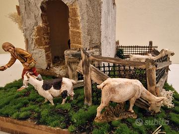 cascina modello masseria per presepi, completo di statuine 10 cm. totalmente fatto a mano misure 28 altezza e base 25x25 cm materiale impiegato; Polistirene, polvere cementizia, pvc e legno. molto realistico.