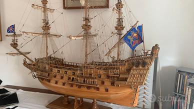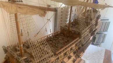 modello nave galeone del 1637 " La Sovrana dei Mari" dim 116x44x100 costruita a mano - fornita con pedana in legno - alcuni dettagli da sistemare - prezzo trattabile - oggetto per veri amanti del settore