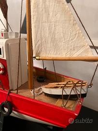 Bellissimo modellino di peschereccio fatto a mano. Lunghezza 50cm Altezza 43cm