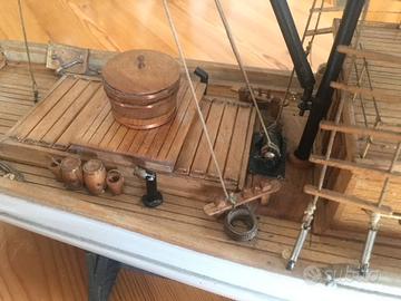 Modello costruito sulla base di disegni della Aereopiccola pubblicati nei primi anni ‘70. Il modello, in legno, riproduce un tipico peschereccio costiero dotato di un albero con tre picchi per il recupero delle reti. In coperta si nota il verricello ed una rete pronta all’uso. Il modello è stato costruito da abile artigiano negli anni 1970 interamente a mano senza scatola di montaggio ma solo con piano di costruzione e usando legni nobili come noce, rovere, faggio, ciliegio, ecc. e materiali torniti come l'ottone . L' ottima fattura e i materiali di qualità rendono il modello adatto all'esposizione sia in ambienti classici che marinari sia in locali commerciali . Vendo a 600 euro trattabili