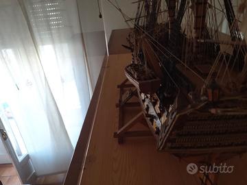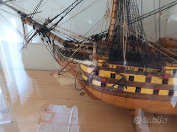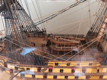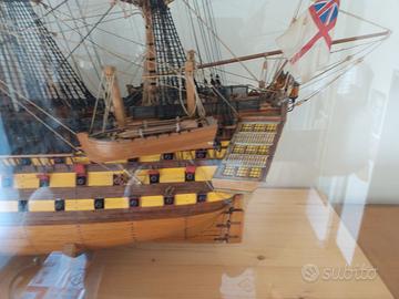 Hms Victory vascello di prima classe in scala 1.98 è una riproduzione fedele del famoso vascello comandato dall'ammiraglio Nelson nella famosa battaglia di Trafalgar, in teca di plexiglass per la massima protezione da urti polvere ecc.