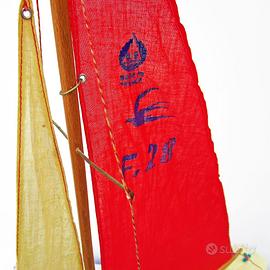 Scafo in plastica rigida, alberatura in legno e vele in tela.
