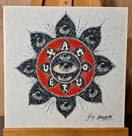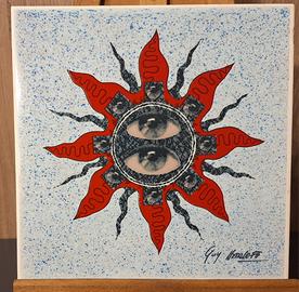 4 Terraglie smaltate decorate a serigrafia di Guy Harloff 1974