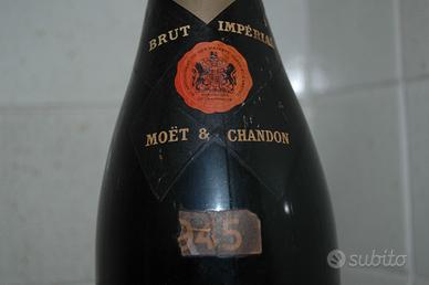 Champagne Brut Imperial MOET & CHANDON bottiglia che abbiamo in casa da generazioni, forse è del '45. Bottiglia commemorativa: Vino di Mussolini Presumo anni 70 o 80 Fate offerte, ma evitate offerte ridicole come se fossero bottiglie di merlot comprate al supermercato. Se non avete i presupposti lasciate perdere.
