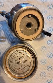 Vendo splendida Moka COLUMBIA 12 tazze da caffè, vecchia caffettiera vintage rara, con qualche macchia ma comunque in ottime condizioni, esattamente come da foto. Si tratta di un pezzo d'epoca sempre più difficile da reperire sul mercato collezionistico. Un esemplare che rappresenta un'importante testimonianza della cultura italiana del caffè e dell'evoluzione del design industriale del dopoguerra. La Columbia è un marchio storico della produzione italiana di caffettiere, meno conosciuto rispetto alle più diffuse Bialetti, ma apprezzatissimo dai collezionisti per la qualità costruttiva e la relativa rarità.