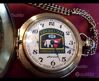 Splendido e raro orologio da tasca Molnia d'epoca sovietica, con il profilo di Pietro I (Pietro il Grande, zar, imperatore di Russia) inciso sul fronte.