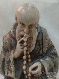 Monaco in preghiera con rosario, antica scultura risalente alla metà del XIX sec.