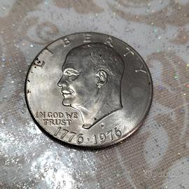 Moneta 1 dollaro bicentenario 1776-1976 con lettera D riportata sotto al collo Eisenhower, in ottime condizioni come da foto. Cod 305