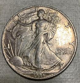 Moneta aquila d’argento americana del valore di 1 dollaro. Dritto: in good we trust , liberty e anno di conio. Rovescio: 1 oz fine silver, un dollar, United States of America. Senza marchio di zecca. Peso 31 gr circa. In ottimo stato.