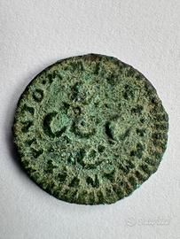 Moneta da 1 grano coniata sotto il Gran Maestro Emanuel Pinto dell’Ordine di Malta (1741–1773). Esemplare in rame con forte patina verde e segni di corrosione tipici dell’età. Il bordo presenta tracce di legenda, mentre il disegno centrale risulta consumato ma riconoscibile come tipico della serie maltese settecentesca. Ideale per collezionisti di numismatica storica o monete dell’Ordine di Malta.