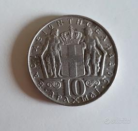 MONETA 10 Dracme 1968 Grecia - Costantino DA COLLEZIONE BUONE CONDIZIONI COME DA FOTO