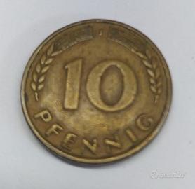 Moneta 10 Pfennig tedesca del 1950 in buone condizioni. Ottimo per collezionisti e per investimento.