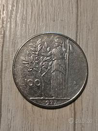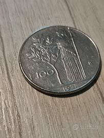 Moneta 100 lire del 1977 Errore di Conio rarissima. La L di lire è quasi mancante, buona parte della lettera è al liscio e non in rilievo. Unica, da collezione
