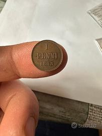 Moneta da 1 penni del 1883 Finlandia Alessandro 3 Molto bella da vicino