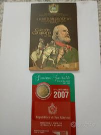2 euro commemorativo moneta divisionale fdc Giuseppe Garibaldi 2007 Repubblica di San Marino in confezione originale. Moneta mai circolata e quindi in condizioni fior di conio.