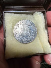 Rara moneta da 2 Lire in argento 835/1000 (peso circa 10 g, diametro 27 mm) coniata durante il regno di Umberto I.