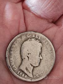 Rarissima moneta del 1844 Argento 900 Diametro 27 Peso 10 g. R2. Mb/bb
