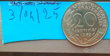 Moneta 20 cent Repubblica Francese Anno 1989