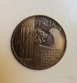 moneta 20 lire mussolini del 1928