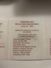 Moneta 25 € Argento Vaticano Manzoni 2023