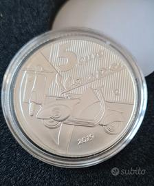 Rara moneta da collezione da 5 euro in argento prodotta nell'anno 2019 per celebrare la Vespa come eccellenza italiana.