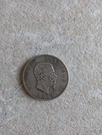 Moneta del Regno d'Italia, 5 lire in argento del 1873, raffigurante Vittorio Emanuele II