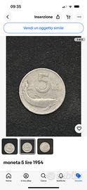 Moneta 5 lire rara 1954