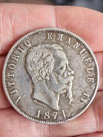 moneta 5 lire Vittorio Emanuele II 1871