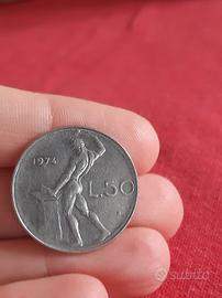 Moneta da 50 lire del 1974, modello Vulcano, usata, ma in buonissime condizioni!