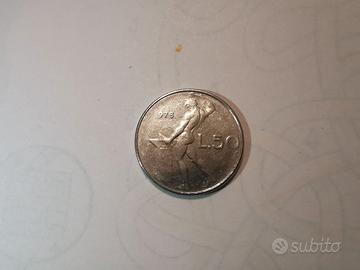 Moneta rara da 50 lire anno 1978 vulcano repubblica Italiana con doppio difetto di conio (battitura 1 mancante e scritta repubblica Italiana poco in rilievo)