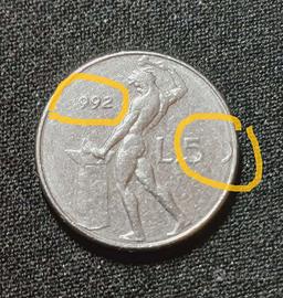 MONETA 50 LIRE ITALIA 1992 ERRORE DI CONIO