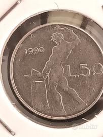 Moneta 50 Lire Piccole 1990 della Repubblica Italiana, RARA, senza rombo e con "R" piccolissima non marcata, conservata in oblò, in ottime condizioni (SPL), vedasi tutte le foto allegate a conferma.