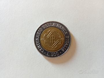 Moneta 500 lire Centenario Banca Italia 1893/1993