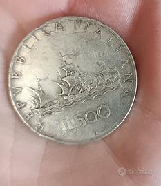 Monete 500 lire Le Caravelle anno 1958 circolata in ottime condizioni.