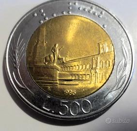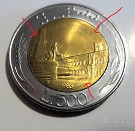 Moneta da 500 lire bimetallica, 1986, con errori di conio.