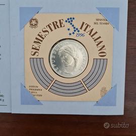 Privato cede da propria collezione splendida moneta da 5000 Lire in Argento 835/1000 "Presidenza Italiana Unione Europea" del 1996 - Peso 18 Gr. - in confezione della Zecca di Stato in assoluto FDC per collezionisti. PREZZO NON TRATTABILE - NO PERDITEMPO GRAZIE! - SPEDIZIONE RACCOMANDATA.