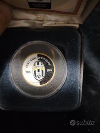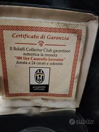 Moneta 500 lire Caravelle Juventus dorata 24 karati e colorata bianco nera. Della Bolaffi collector club.