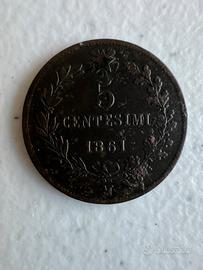 È una 5 Centesimi – Regno d’Italia, anno 1861.