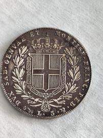 moneta argento 5 lire 1842 Sardegna Carlo Alberto