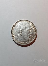 Moneta argento 5 Marchi 1938