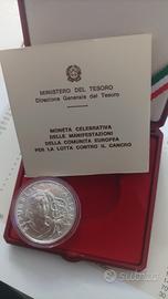 moneta argento 835% L.500 1989 lotta contro cancro