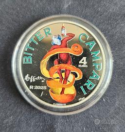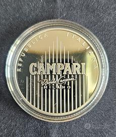 Vendo moneta celebrativa del famosissimo marchio milanese leader nel settore del beverage: Campari. Bellissima moneta raffigirante lo storico spiritello ideato negli anni venti, avvolto nella buccia d'arancia, in argento fondo specchio (proof); valore facciale 4 €; peso 18 grammi; diametro 32 millimetri; tiratura limitata a 5000 pezzi; stato di conservazione perfetta, nuovissima. Fornita di astuccio originale e relativo certificato di garanzia.