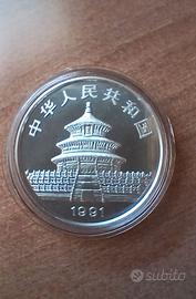VENDO MONETA ORIGINALE CINESE DA 10 YUAN ANNO 1991 IN PURO ARGENTO ( 999 ) FIOR DI CONIO.