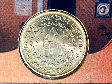 Moneta in argento da 5.000 Lire del 1993, in condizioni FDC (Fior di Conio), celebrativa del 650° anniversario dell'istituzione dell'Università di Pisa.