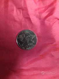 moneta commemorativa città del vaticano con inciso il volto di papà Giovanni paolo secondo e i continenti ,valore unitario lire 100 ,coniata in acmonital condizione splendido