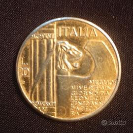 Moneta celebrativa/medaglia mai ufficialmente circolata 20 lire 1943 - Regno d'Italia. La moneta è una riproduzione della moneta da 20 lire 1943, con il ritratto di Mussolini al posto di quello di Re Vittorio Emanuele III.