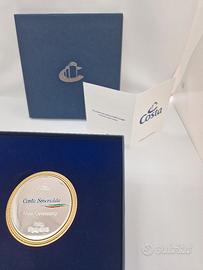 Vendo rara moneta commemorativa in argento dedicata alla costruzione della nave Costa Smeralda, un autentico pezzo di tradizione marinara. Questa moneta è stata prodotta in esclusiva dalla rinomata ditta Fratelli Pazzaglia di Pisa per la speciale "cerimonia della moneta", un rito secolare che celebra l'inizio della costruzione della nave: alcune monete vengono posizionate sulla chiglia come simbolo di buon augurio per l’equipaggio, i passeggeri e le future traversate.