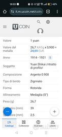 Dollaro cinese in argento (900) del 1914, Yuan Shih Kai, era repubblicana varietà militare, diametro mm. 39, peso gr. 26,85 rara e altissimo valore.
