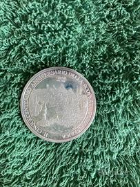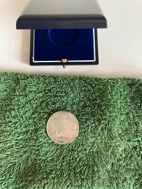 La mezza oncia d'argento dell"epopea di Cristoforo Colombo. Sempre custodita nella sua scatolina originale. Da un lato la citta' di Genova e dall'altro una delle tre caravelle di Cristoforo Colombo.