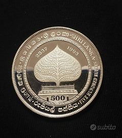 Si tratta di una moneta commemorativa dello Sri Lanka da 500 rupie, emessa nel 1993 per celebrare il 2300° anniversario dell'arrivo degli insegnamenti del Buddha nel paese.